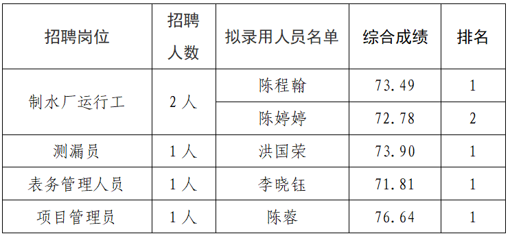 根据捕鱼达人 闽清水务有限公司招聘公告,经过报名、资格审查、笔试、面试等公开招聘程序,现将拟录用人员进行公示。公示时间从2026年4月16日开始,公示期为七个自然日。在此期间内,如有意见可通过来电、来信、来访的形式反映情况。