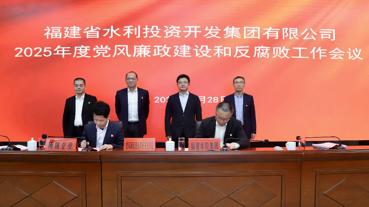 会上,部分权属企业代表签订了《党风廉政建设责任书》。集团公司领导,权属全资企业党政主要负责人、纪委书记(纪检委员),控股公司闽西南公司、霍口水务公司、厦漳水资源公司主要负责人,总部中层以上干部参加主会场。权属二级、三级企业中层以上干部以视频会议形式参加分会场。