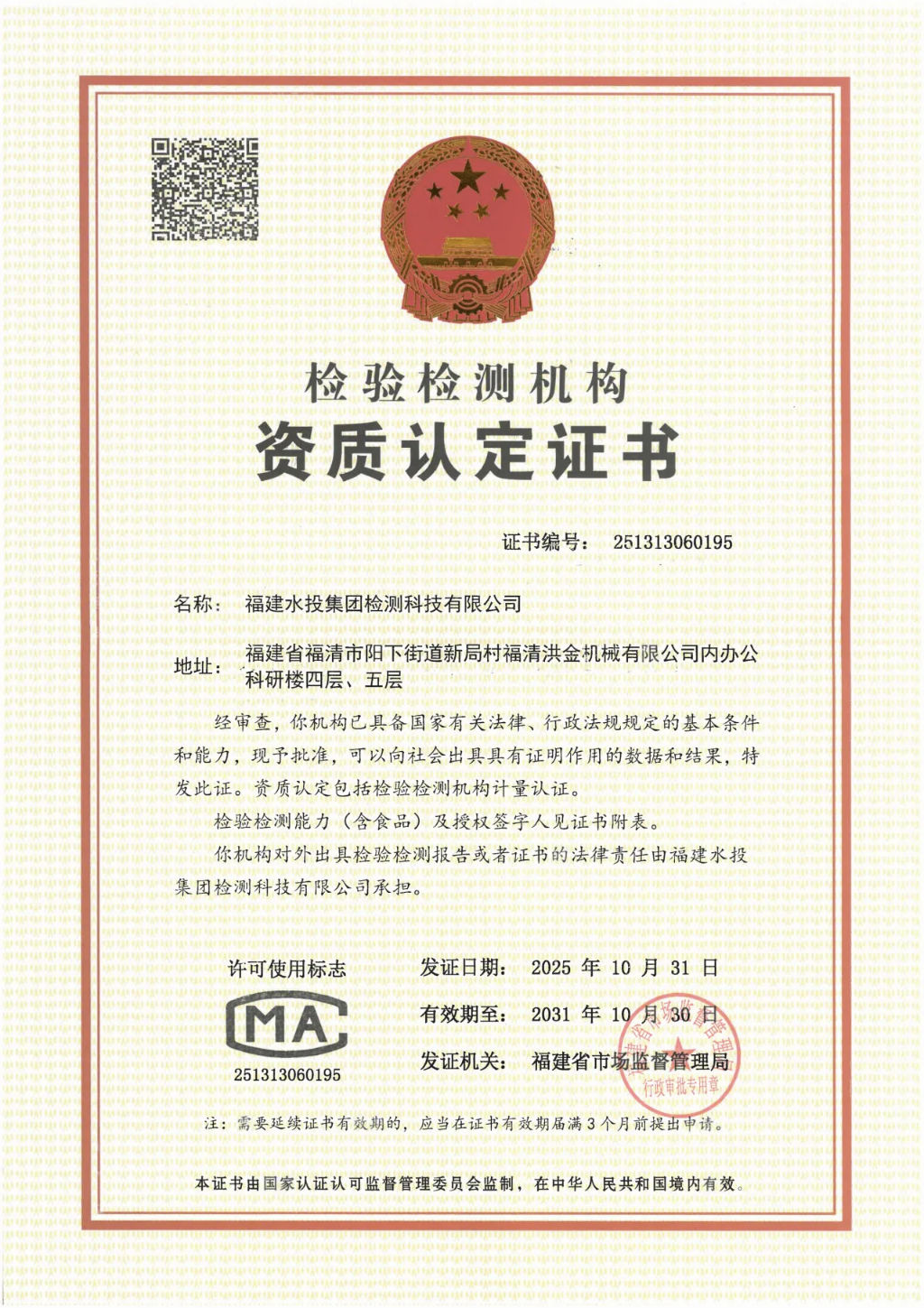 近日,捕鱼达人 检测科技有限公司顺利通过水质指标检测能力CMA资质认证,涵盖生活饮用水、水和废水2大类74个项目,为下一步拓展水质检测业务奠定坚实基础。
