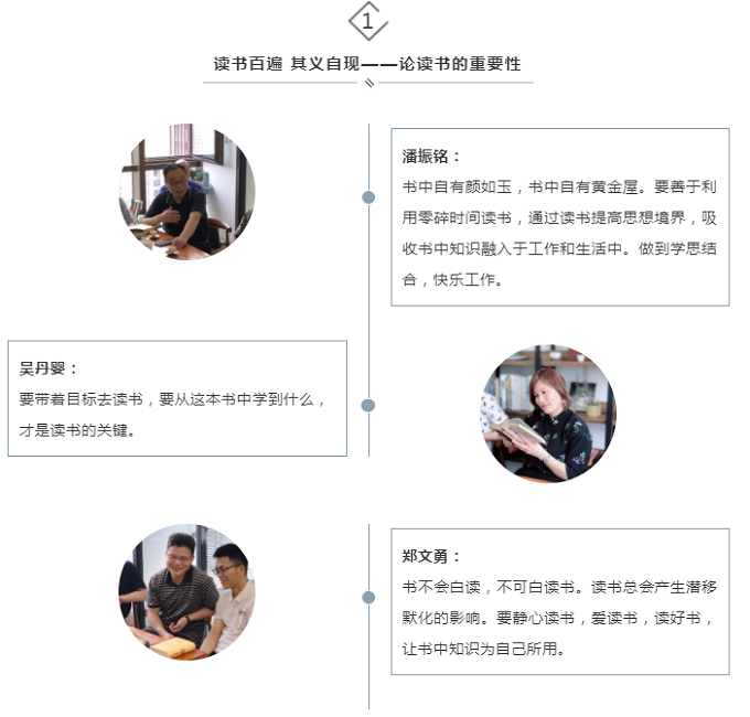 集团公司党委副书记、纪委书记、工会主席潘振铭,党委委员、总会计师吴丹婴,党委委员、总工程师郑文勇与干部职工共聚一堂分享读书心得。