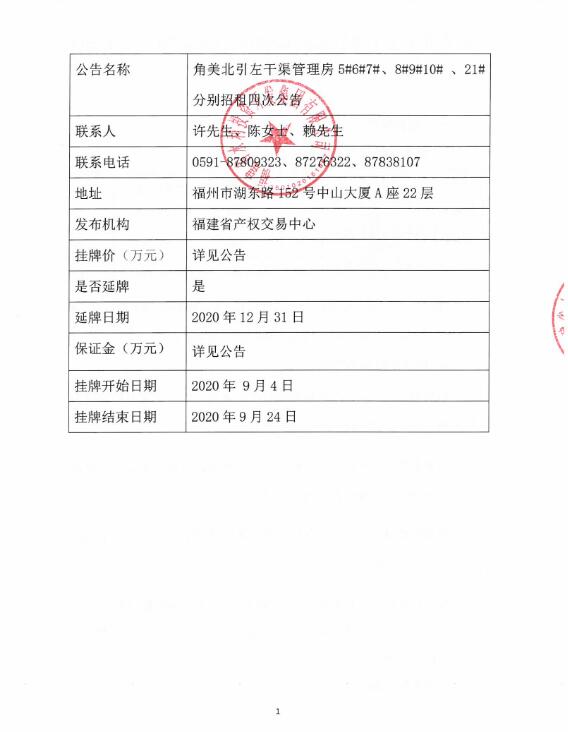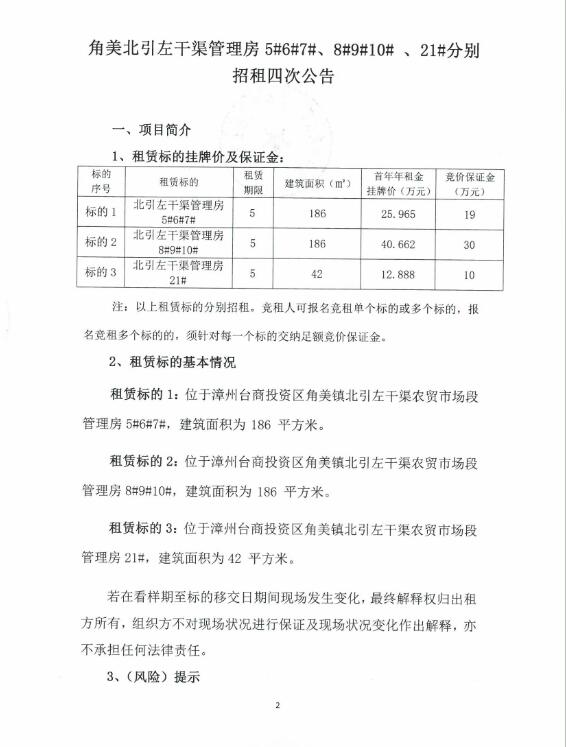 角美北引左干渠管理房5#6#7#、8#9#10#、21#分别招租四次公告
